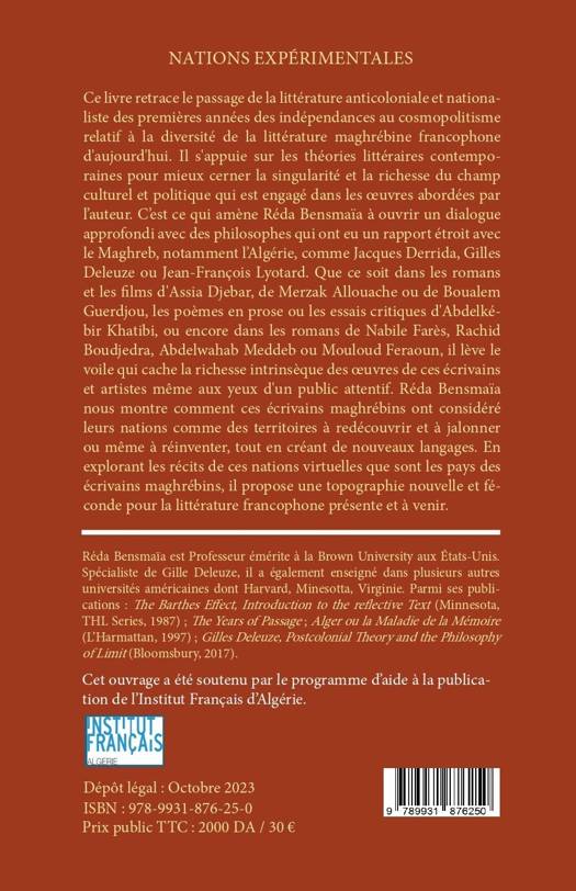 Ce livre retrace le passage de la littérature anticoloniale et nationaliste des premières années des indépendances au cosmopolitisme relatif et à la diversité de la littérature maghrébine francophone d'aujourd'hui. Il s'appuie sur les théories littéraires contemporaines pour mieux cerner la singularité et la richesse du champ culturel et politique qui est engagé dans les œuvres abordées par l’auteur. C’est ce qui amène Réda Bensmaïa à ouvrir un dialogue approfondi avec des philosophes qui ont eu un rapport étroit avec l’Algérie comme Jacques Derrida, Gilles Deleuze ou Jean-François Lyotard. Que ce soit dans les romans et les films d'Assia Djebar, de Merzak Allouache ou de Boualem Guerdjou, les poèmes en prose ou les essais critiques d'Abdelkébir Khatibi, ou encore dans les romans de Nabile Farès, Rachid Boudjedra, Abdelwahab Meddeb ou Mouloud Feraoun, il lève le voile qui cache la richesse intrinsèque des œuvres de ces écrivains et artistes même aux yeux d'un public attentif. Réda Bensmaïa nous montre comment ces écrivains maghrébins ont considéré leurs nations comme des territoires à redécouvrir et à jalonner ou même à réinventer, tout en créant de nouveaux langages. En explorant les récits de ces nations virtuelles que sont les pays des écrivains maghrébins, il propose une topographie nouvelle et féconde pour la littérature francophone présente et à venir.