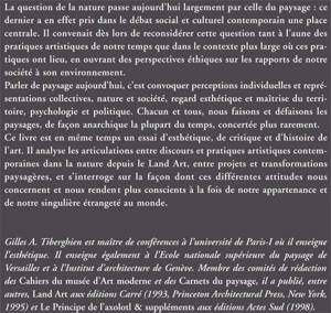 La question de la nature passe aujourd'hui largement par celle du paysage : ce dernier a en effet pris dans le débat social et culturel contemporain une place centrale. Il convenait dès lors de reconsidérer cette question tant à l'aune des pratiques artistiques de notre temps que dans le contexte plus large où ces pratiques ont lieu, en ouvrant des perspectives éthiques sur les rapports de notre société à son environnement.