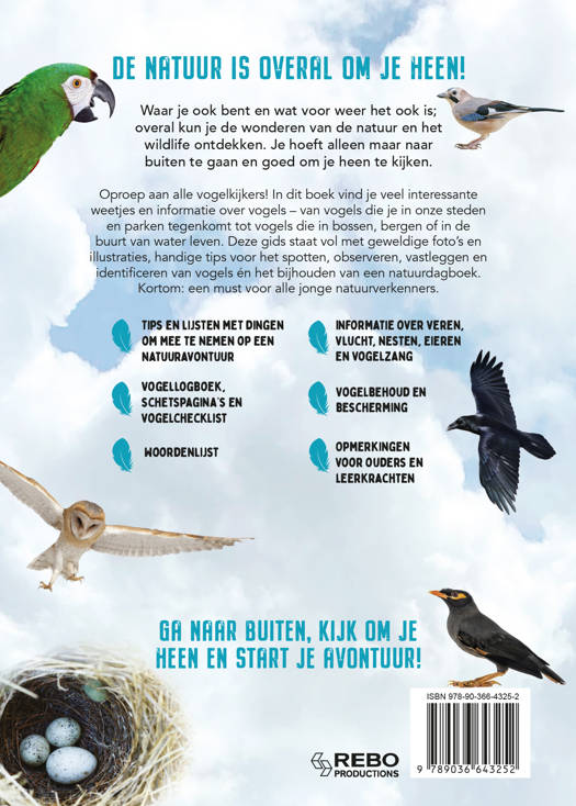 Oproep aan alle vogelkijkers! In dit boek vind je veel interessante weetjes en informatie over vogels – van vogels die je in onze steden en parken tegenkomt tot vogels die in bossen, bergen of in de buurt van water leven. Deze gids staat vol met geweldige foto's en illustraties, handige tips voor het spotten, observeren, vastleggen en identificeren van vogels én het bijhouden van een natuurdagboek. Kortom: een must voor alle jonge natuurverkenners.