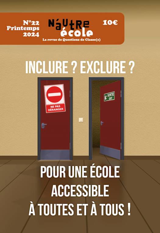 Inclure, exclure ? Pour une école accessible à toutes et tous ! Pour être inclusive, l'école doit s'organiser pour répondre aux besoins éducatifs particuliers et ne pas se contenter d'adapter les élèves en situation de handicap à une société pensée et faite pour les individus valides. Elle doit aussi penser les conditions de travail de celles et ceux qui accompagnent les élèves concerné·es. Faire de l'école un lieu d'inclusion, c'est interroger sa structure même. Peut-elle inclure la différence sans se transformer radicalement ? Il s'agirait alors de partir du handicap pour réfléchir à une autre école, peut-être même à remettre en question le terme « inclure