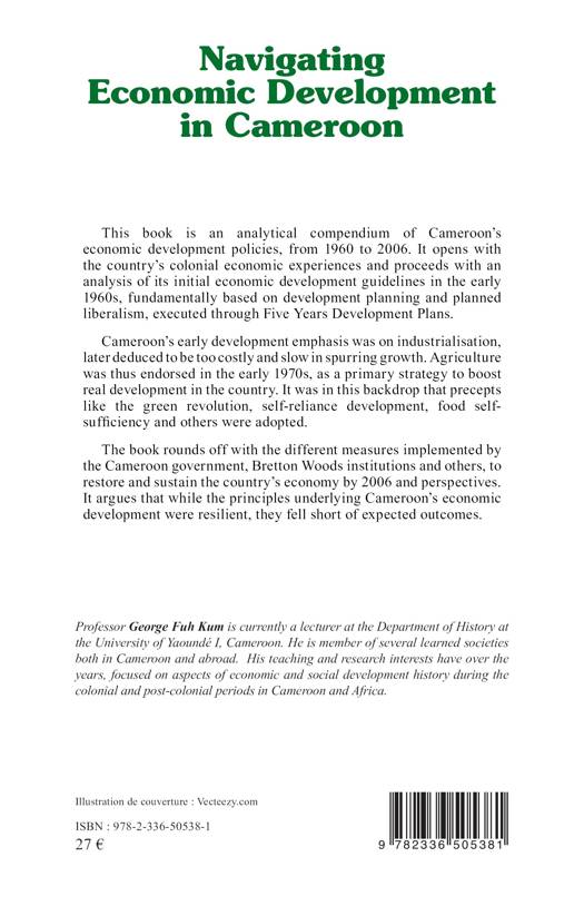 This book is an analytical compendium of Cameroon's economic development policies, from 1960 to 2006. It opens with the country's colonial economic experiences and proceeds with an analysis of its initial economic development guidelines in the early 1960s, fundamentally based on development planning and planned liberalism, executed through Five Years Development Plans. Cameroon's early development emphasis was on industrialisation, later deduced to be too costly and slow in spurring growth. Agriculture was thus endorsed in the early 1970s, as a primary strategy to boost real development in the country. It was in this backdrop that precepts like the green revolution, self-reliance development, food self-sufficiency and others were adopted. The book rounds off with the different measures implemented by the Cameroon government, Bretton Woods institutions and others, to restore and sustain the country's economy during and after the economic crisis. It argues that while the principles underlying Cameroon's economic development were resilient, they fell short of expected outcomes.