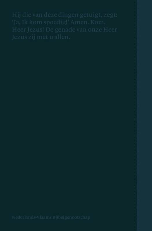 en op de achterkant staan verzen uit Openbaring, dat het laatste boek in de Bijbel is. Zo draagt het luxe omslag