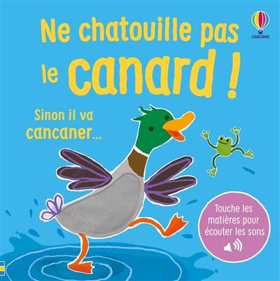 Les tout-petits ne pourront pas résister à l'envie de chatouiller les matières toutes douces des animaux pour entendre leur cri rigolo. En plus du canard, ils pourront rencontrer une grenouille, une loutre et un héron... avant de tous les retrouver à la dernière page pour un final en musique !