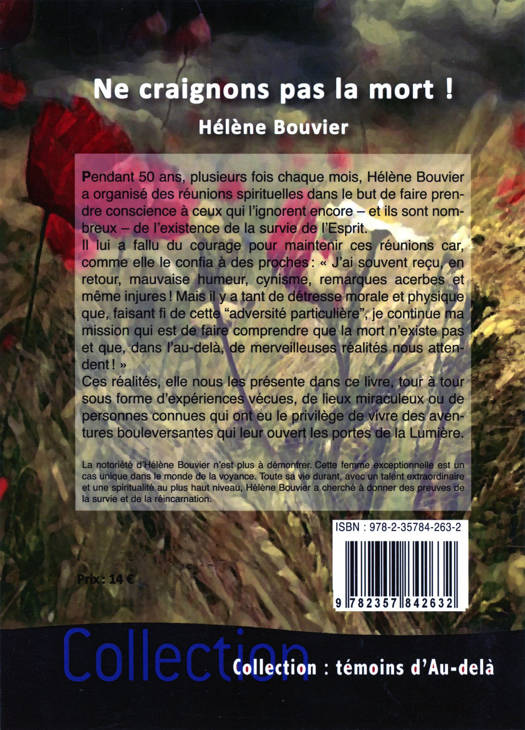 Pendant 50 ans, plusieurs fois chaque mois, Hélène Bouvier a organisé des réunions spirituelles dans le but de faire prendre conscience à ceux qui l'ignorent encore - et ils sont nombreux - de l'existence de la survie de l'Esprit. Il lui a fallu du courage pour maintenir ces réunions car, comme elle le confia à des proches : « J'ai souvent reçu, en retour, mauvaise humeur, cynisme, remarques acerbes et même injures ! Mais il y a tant de détresse morale et physique que, faisant fi de cette ''adversité particulière'', je continue ma mission qui est de faire comprendre que la mort n'existe pas et que, dans l'au-delà, de merveilleuses réalités nous attendent ! » La notoriété d'Hélène Bouvier n'est plus à démontrer. Cette femme exceptionnelle est un cas unique dans le monde de la voyance. Toute sa vie durant, avec un talent extraordinaire et une spiritualité au plus haut niveau, Hélène Bouvier a cherché à donner des preuves de la survie et de la réincarnation.