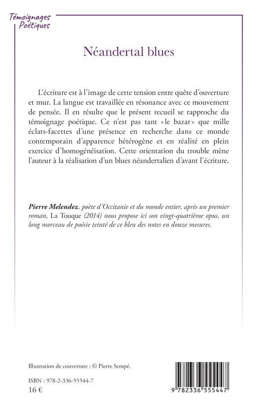 L'écriture est à l'image de cette tension entre quête d'ouverture et mur. La langue est travaillée en résonance avec ce mouvement de pensée. Il en résulte que le présent recueil se rapproche du témoignage poétique. Ce n'est pas tant le bazar que mille éclats-facettes d'une présence en recherche dans ce monde contemporain d'apparence hétérogène et en réalité en plein exercice d'homogénéisation. Cette orientation du trouble mène l'auteur à la réalisation d'un blues néandertalien d'avant l'écriture.
