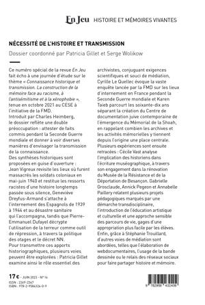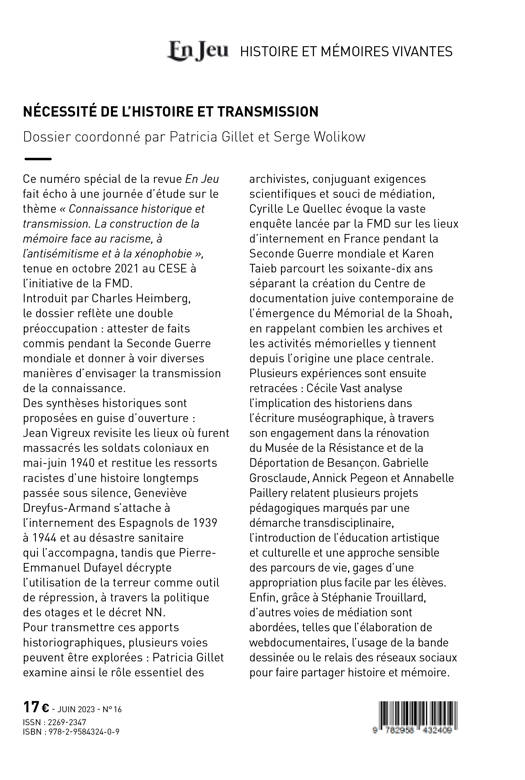 Ce sont les actes d’une journée d’étude qui s’est déroulée en octobre 2021, réunissant des historiens, des archivistes et autres acteurs qui participent à la transmission de l’histoire dans les musées, à travers des expositions ou encore la bande dessinée. Chacun apporte sa contribution en matière de lutte contre le racisme, l’antisémitisme et la xénophobie.