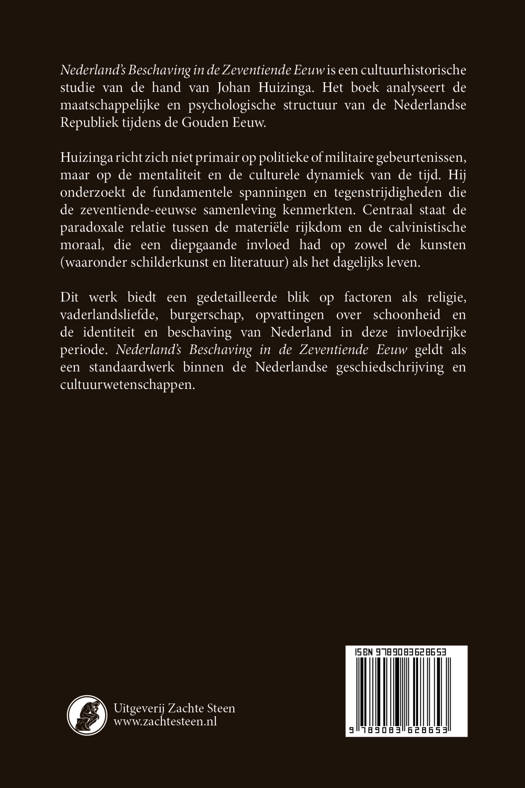 Dit werk biedt een gedetailleerde blik op factoren als religie, burgerschap, vaderlandsgevoel, opvattingen over schoonheid en de identiteit en beschaving van Nederland in deze invloedrijke periode. Nederland’s Beschaving in de Zeventiende Eeuw geldt als een standaardwerk binnen de Nederlandse geschiedschrijving en cultuurwetenschappen.