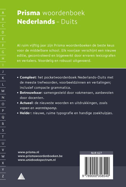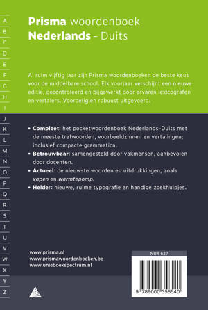 Al ruim 50 jaar worden de Prisma woordenboeken samengesteld, bijgewerkt en gecontroleerd door een team van ervaren lexicografen. Ook deze nieuwe editie is van A tot Z overzichtelijk, robuust uitgevoerd en voordelig.