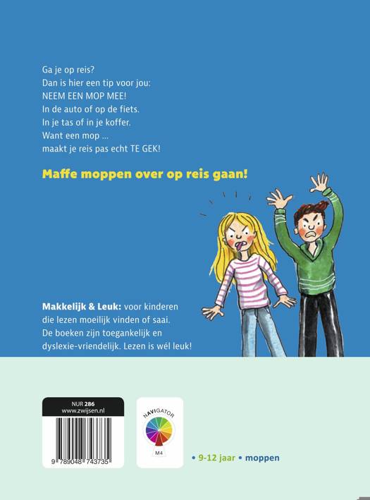 Ken je die mop van … Dit moppenboek is op een laag AVI-niveau (M4) geschreven, maar het boek is bedoeld voor kinderen van 9-12 jaar, dus zeker niet kinderachtig. De boeken in de serie ‘Makkelijk & Leuk’ zijn dyslexie-vriendelijk en speciaal geschreven voor kinderen die lezen moeilijk of niet leuk vinden. Zo krijgen kinderen met leesproblemen of leesweerstand weer lol in lezen!