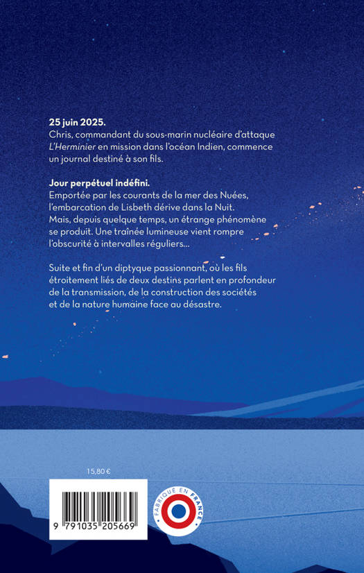 25 juin 2025. Chris, commandant du sous-marin nucléaire d'attaque L'Herminier en mission dans l'océan Indien, commence un journal destiné à son fils.