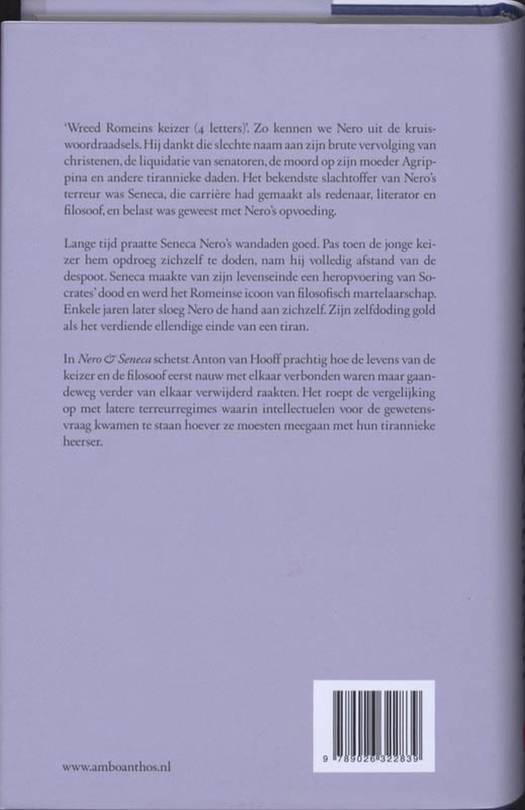 Wreed Romeins keizer (4 letters). Zo kennen we Nero uit de kruiswoordraadsels. Hij dankt die slechte naam aan zijn brute vervolging van christenen, de liquidatie van senatoren, de moord op zijn moeder Agrippina en andere tirannieke daden. Het bekendste slachtoffer van Neros terreur was Seneca, die carrière had gemaakt als redenaar, literator en filosoof, en belast was geweest met Neros opvoeding. Lange tijd praatte Seneca Nero's wandaden goed. Pas toen de jonge keizer hem opdroeg zichzelf te doden, nam hij volledig afstand van de despoot. Seneca maakte van zijn levenseinde een heropvoering van Socrates' dood en werd het Romeinse icoon van filosofisch martelaarschap. Enkele jaren later sloeg Nero de hand aan zichzelf. Zijn zelfdoding gold als het verdiende ellendige einde van een tiran. In 'Nero & Seneca' schetst Anton van Hooff prachtig hoe de levens van de keizer en de filosoof eerst nauw met elkaar verbonden waren maar gaandeweg verder van elkaar verwijderd raakten. Het roept de vergelijking op met latere terreurregimes waarin intellectuelen voor de gewetensvraag kwamen te staan hoever ze moesten meegaan met hun tirannieke heerser.