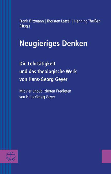 [Reasoning with curiosity. The academic teaching and theological work of Hans-Georg Geyer. With four unpublished sermons by Hans-Georg Geyer] A philosopher trained in the Frankfurt School of Horkheimer and Adorno and simultaneously a theologian in the vein of Karl Barth, systematic theologian Hans-Georg Geyer (1929-1999) has influenced numerous students in the decades between the Berlin Wall until the reunification of Germany. This volume presents the conference results of a working group gathered by Henning Theißen who pioneers future research on Geyer's teaching and scientific works. Exploring Geyer's literary remains, the authors reconstruct the vivid intellectual and sociocultural contexts in which Geyer's theology is situated. The scientific edition of four hitherto unpublished sermons adds a widely unknown perspective to the protrait of Geyer.