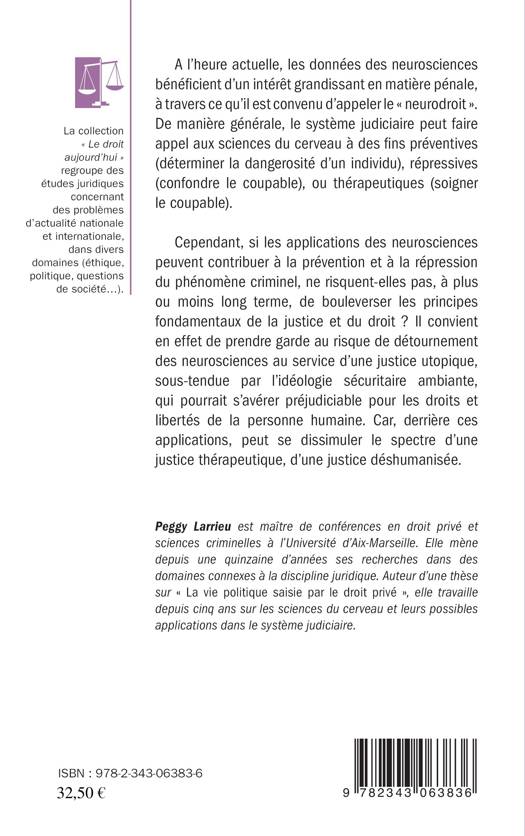 À l'heure actuelle, les données des neurosciences bénéficient d'un intérêt grandissant en matière pénale, à travers ce qu'il est convenu d'appeler le "neurodroit". De manière générale, le système judiciaire peut faire appel aux sciences du cerveau à des fins préventives, répressives ou thérapeutiques. Cependant, si les applications des neurosciences peuvent contribuer à la prévention et à la répression du phénomène criminel, ne risquent-elles pas, à plus ou moins long terme, de bouleverser les principes fondamentaux de la justice et du droit ?