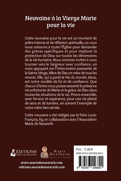 Cette neuvaine pour la vie est un moment de prière intense et de réflexion spirituelle, où nous nous unissons à toute l'Eglise pour demander des grâces spécifiques et pour implorer la protection de Dieu sur toutes les dimensions de la vie humaine. Nous sommes invités à nous tourner vers le Seigneur avec confiance, en nous appuyant sur l'intercession puissante de la Sainte Vierge, Mère de Dieu et mère de tous les vivants. Elle, qui a porté la Vie du monde, Jésus, est notre modèle de foi et de confiance. Que chacun d'entre nous puisse ressentir la présence réconfortante de Marie et la grâce de Dieu dans toutes les situations de la vie. Prions ensemble, avec ferveur et espérance, pour une vie pleine de sens et de lumière, en suivant l'exemple de notre mère bien-aimée. Cette neuvaine a été rédigée par le frère Louis-François, fsj, en collaboration avec l'Association Marie de Nazareth.