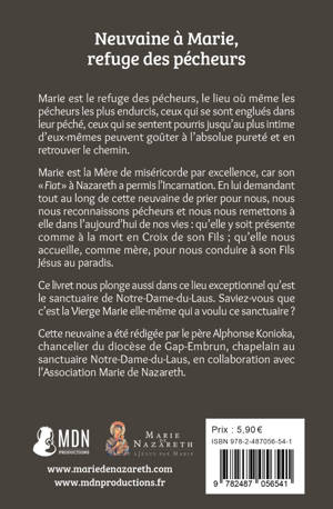 Marie est le refuge des pécheurs, le lieu où même les pécheurs les plus endurcis, ceux qui se sont englués dans leur péché, ceux qui se sentent pourris jusqu'au plus intime d'eux-mêmes peuvent goûter à l'absolue pureté et en retrouver le chemin. Marie est la Mère de miséricorde par excellence, car son «Fiat» à Nazareth a permis l'Incarnation. En lui demandant tout au long de cette neuvaine de prier pour nous, nous nous reconnaissons pécheurs et nous nous remettons à elle dans l'aujourd'hui de nos vies : qu'elle y soit présente comme à la mort en Croix de son Fils , qu'elle nous accueille, comme mère, pour nous conduire à son Fils Jésus au paradis. Ce livret nous plonge aussi dans ce lieu exceptionnel qu'est le sanctuaire de Notre-Dame-du-Laus. Saviez-vous que c'est la Vierge Marie elle-même qui a voulu ce sanctuaire ? Cette neuvaine a été rédigée par le père Alphonse Konioka, chancelier du diocèse de Gap-Embrun, chapelain au sanctuaire Notre-Dame-du-Laus.