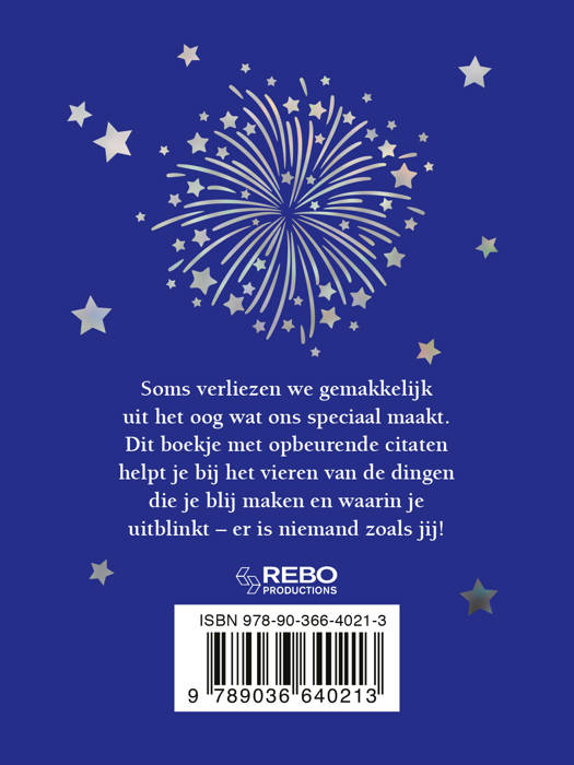 Soms verliezen we gemakkelijk uit het oog wat ons speciaal maakt. Dit boekje met opbeurende citaten helpt je bij het vieren van de dingen die je blij maken en waarin je uitblinkt - er is niemand zoals jij!
