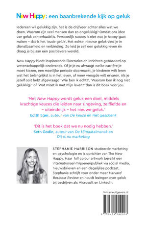 The New Happy is een stapsgewijze handleiding, met inspirerende verhalen en verhelderende inzichten uit meer dan tien jaar onderzoek. Als je jezelf ooit hebt afgevraagd: 'Wie ben ik echt?', 'Waarom ben ik nog niet gelukkig?' of 'Wat moet ik met mijn leven?' dan is dit boek voor jou. Harrison zet je aan tot nadenken over wat geluk voor jou betekent en hoe je het begrip opnieuw kunt invullen. De fullcolour illustraties maken de inhoud direct duidelijk en bieden talloze inzichten.