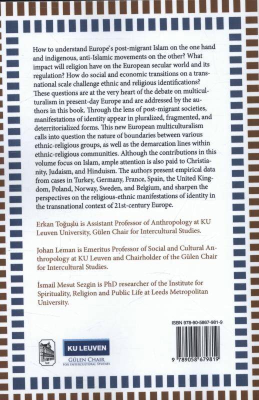How are we to understand Europe's post-migrant Islam on the one hand and indigenous, anti-Islamic movements on the other? What impact will religion have on the European secular world and its regulation? How do social and economic transitions on a transnational scale challenge ethnic and religious identifications? These questions are at the very heart of the debate on multiculturalism in present-day Europe and are addressed by the authors in this book. Through the lens of post-migrant societies, manifestations of identity appear in pluralized, fragmented, and deterritorialized forms. This new European multiculturalism calls into question the nature of boundaries between various ethnic-religious groups, as well as the demarcation lines within ethnic-religious communities. Although the contributions in this volume focus on Islam, ample attention is also paid to Christianity, Judaism, and Hinduism.The authors present empirical data from cases in Turkey, Germany, France, Spain, the United Kingdom, Poland, Norway, Sweden, and Belgium, and sharpen the perspectives on the religious-ethnic manifestations of identity in the transnational context of twenty-first-century Europe. Contributors: Chris Allen (University of Birmingham), Cüneyt Dinç (Süleyman Sah University, Istanbul), Frédérique Harry (University of Paris-Sorbonne), Goedroen Juchtmans (KU Leuven and IKKS, Antwerp), Vincent Legrand (Université catholique de Louvain), Johan Leman (KU Leuven), Kathryn Lum (European University Institute, Florence), Marcel Meciar (Yeditepe University, Istanbul), Ephraim Nimni (Queen's University Belfast), Murat Sevencan (Suleyman Sah University, Istanbul), Ismail Mesut Sezgin (Leeds Metropolitan University), Erkan Toguslu (KU Leuven), Katarzyna Warminska (Cracow University)
