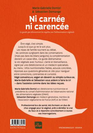 Ce guide nutritionnel vegan est conçu comme un véritable compagnon de route : concis, clair, et fiable, il tient dans la poche et répond enfin aux questions les plus fréquentes qu’on se pose ou qu’on nous pose lorsque l’on adopte une alimentation végétale. Rédigé par un médecin et une diététicienne spécialiste du sujet, ainsi que membres de l’ONAV (Observatoire National des Alimentations Végétales) et de l’AVF (Association Végétarienne de France), il offre des réponses scientifiques et rassurantes aux inquiétudes courantes sur les carences, les apports, les besoins spécifiques selon l’âge ou le mode de vie.