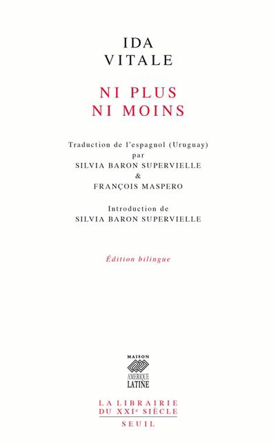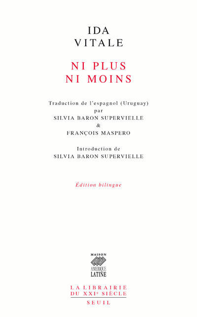 Après avoir traduit la poésie d’Alvaro Mutis puis celle de César Vallejo, François Maspero avait entrepris de traduire Ida Vitale. La mort l’a surpris au cœur de ce travail.
