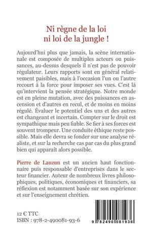 Aujourd'hui plus que jamais, la scène internationale est composée de multiples acteurs ou puissances, au-dessus desquels il n'est pas de pouvoir régulateur. Leurs rapports sont en général relativement paisibles, mais à l'occasion l'un ou l'autre recourt à la force pour imposer ses vues. C'est là qu'intervient la pensée stratégique. Notre monde est en pleine mutation, avec des puissances en ascension et d'autres en recul, et de moins en moins régulé. Évaluer le potentiel des uns et des autres est changeant et incertain. Compter sur le droit est sympathique mais peu fiable. Se fier à ses forces est souvent trompeur. Une conduite éthique reste possible. Mais elle devra se fonder sur une analyse réaliste, et sur la recherche cas par cas du plus grand bien qui apparaît alors possible.