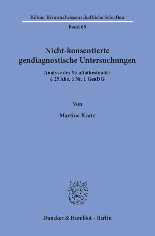 Die Verfasserin behandelt dabei zunächst die Gesetzeslage vor Inkrafttreten des Tatbestandes und richtet sodann den Blick auf die neuen Straftatbestände des GenDG im Gesamtgefüge der Normierung. Die Arbeit widmet sich vertieft den einzelnen Tatbestandsvoraussetzungen der Strafbarkeit von genetischen Untersuchungen und Analysen zu medizinischen Zwecken. Dabei erfolgt auch eine umfassende Betrachtung der besonderen Gefahren, die bei einer Auslandstatbegehung bestehen. Es werden anhand des neuen Straftatbestandes allgemeine Probleme der Einwilligungslehre und des Strafanwendungsrechts behandelt.