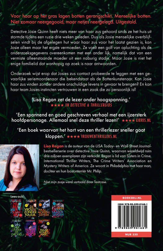 'Lisa Regan heeft met Niet mijn zusje een onwaarschijnlijk enerverende thriller toegevoegd aan de wereldverzameling boeken.' *****Vrouwenthrillers.nl