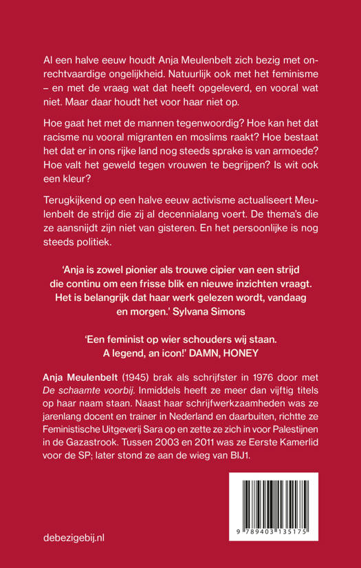 Terugkijkend op een halve eeuw activisme actualiseert Meulenbelt de strijd die zij al decennialang voert. De thema’s die ze aansnijdt zijn niet van gisteren. En het persoonlijke is nog steeds politiek.