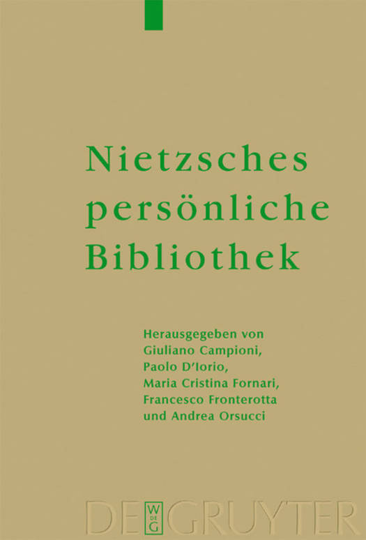 Neben den ca. 2.200 Titeln aus Nietzsches rekonstruierter Bibliothek enthält der Band auch ein Verzeichnis sämtlicher 'Lesespuren' Nietzsches (ca. 20.000), z.B. Anmerkungen, Unterstreichungen und Eselsohren. Ergänzt durch zahlreiche Faksimile-Reproduktionen sowie durch philosophische, historische und bibliographische Einführungen, stellt der Band ein unverzichtbares Arbeitsinstrument jeder zukünftigen Nietzsche-Forschung dar.