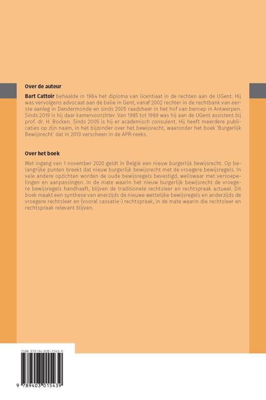 Met ingang van 1 november 2020 geldt in België een nieuw burgerlijk bewijsrecht. Op belangrijke puntenbreekt dat nieuw burgerlijk bewijsrecht met de vroegere bewijsregels. In vele andere opzichten worden de oude bewijsregels bevestigd, weliswaar met versoepelingen en aanpassingen. In de mate waarin het nieuw burgerlijk bewijsrecht de vroegere bewijsregels handhaaft, blijven de traditionele rechtsleer en rechtspraak actueel. Dit boek maakt een synthese van enerzijds de nieuwe wettelijke bewijsregels en anderzijds de vroegere rechtsleer en (vooral cassatie-) rechtspraak, in de mate waarin die rechtsleer en rechtspraak relevant blijven.