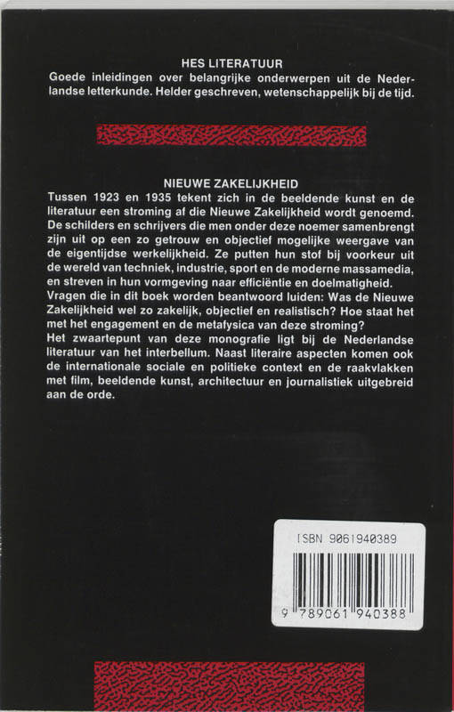 Tussen 1923 en 1935 tekent zich in de beeldende kunst en de literatuur een stroming af die Nieuwe Zakelijkheid wordt genoemd. De schilders en schrijvers die men onder deze noemer samenbrengt zijn uit op een zo getrouw en objectief mogelijke weergave van de eigentijdse werkelijkheid. Ze putten hun stof bij voorkeur uit de wereld van de techniek, industrie, sport en de moderne massamedia, en streven in hun vormgeving naar efficiëntie en doelmatigheid. In dit boek wordt ingegaan op vragen als: Was de Nieuwe Zakelijkheid wel zo zakelijk, objectief en realistisch? Hoe staat het met het engagement en de metafysica van deze stroming? Het zwaartepunt van deze monografie ligt bij de Nederlandse literatuur van het interbellum. Naast literaire aspecten komen ook de internationale sociale en politieke context en de raakvlakken met film, beeldende kunst, architectuur en journalistiek uitgebreid aan de orde.