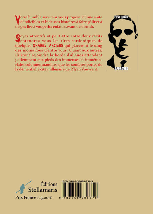 Soyez attentifs et peut-être entre deux récits entendrez vous les rires sardoniques de quelques Grands Anciens qui glaceront le sang des moins fous d’entre vous. Quant aux autres, ils iront rejoindre la horde d’aliénés attendant patiemment aux pieds des immenses et immémoriales colonnes maudites que les sombres portes de la démentielle cité millénaire de R’lyeh s’ouvrent.