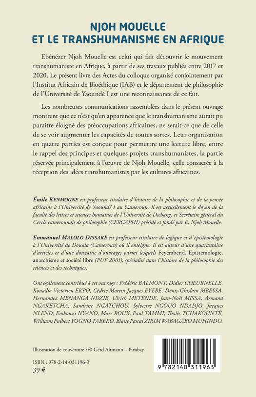 Ebénézer NJOH MOUELLE est celui qui fait découvrir le mouvement transhumaniste en Afrique, à partir de ses travaux publiés entre 2017 et 2020. Le présent livre des Actes du colloque organisé conjointement par l'Institut Africain de Bioéthique (IAB) et le département de philosophie de l'Université de Yaoundé I est une reconnaissance de ce fait. Les nombreuses communications rassemblées dans le présent ouvrage montrent que ce n'est qu'en apparence que le transhumanisme aurait pu paraitre éloigné des préoccupations africaines, ne serait-ce que de celle de se voir augmenter les capacités de toutes sortes. Leur organisation en quatre parties est conçue pour permettre une lecture libre, entre le rappel des principes et quelques projets transhumanistes, la partie réservée principalement à l'oeuvre de NJOH MOUELLE, celle consacrée à la réception des idées transhumanistes par les cultures africaines.