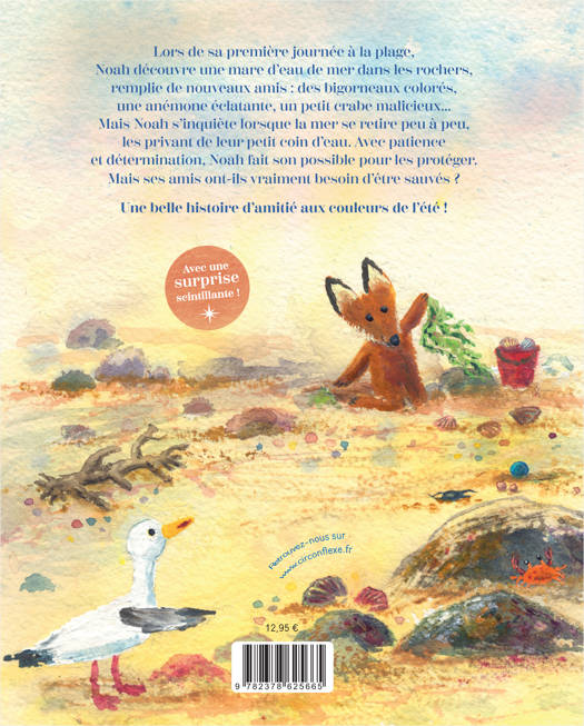 Lors de sa première journée à la plage, Noah découvre une mare d’eau de mer dans les rochers, remplie de nouveaux amis : des bigorneaux colorés, une anémone éclatante, un petit crabe malicieux… Mais Noah s’inquiète lorsque la mer se retire peu à peu, les privant de leur petit coin d’eau. Avec patience et détermination, Noah fait son possible pour les protéger. Mais ses amis ont-ils vraiment besoin d’être sauvés ?