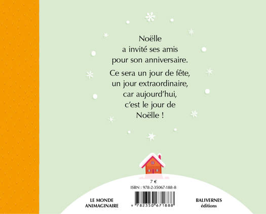 Noëlle la Gazelle va fêter son anniversaire : elle a préparé une fête exceptionnelle. Pendant ce temps, il neige dehors, et elle est très impatiente car elle attend l'arrivée de ses amis. Mais ceux-ci tardent à venir⦠C'est que le petit bonhomme de neige les aide à lui faire une merveilleuse surprise, et ce jour sera vraiment le jour de Noëlle !