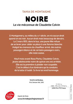 Montgomery, Alabama. Ici, être noir ne donne aucun droit mais beaucoup de devoirs. Le 2 mars 1955, dans le bus où elle a pris place, Claudette Colvin refuse de se lever pour céder sa place à une femme blanche. Malgré les menaces du chauffeur armé, des autres passagers blancs et de certains passagers noirs, elle reste assise. Neuf mois avant la célèbre Rosa Parks, Claudette Colvin, jeune afro-américaine de quinze ans est arrêtée. Elle est la première à plaider non-coupable. C’est le début d’un itinéraire qui la conduira de la lutte à l’oubli. Ce livre lui rend hommage.