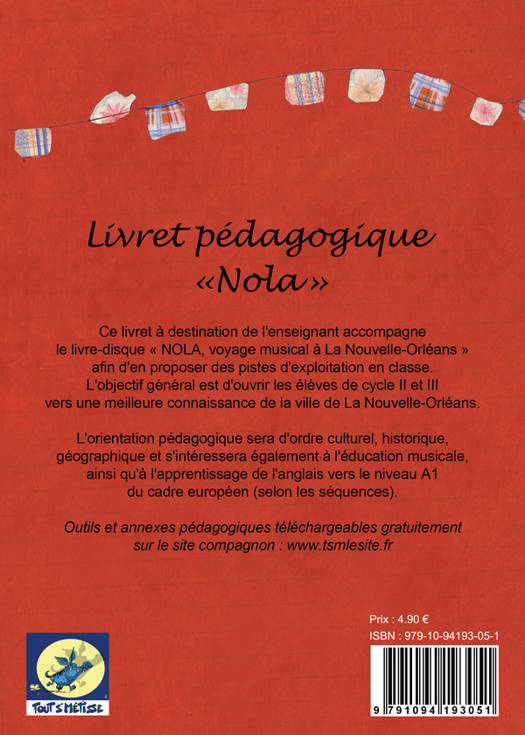 "Ce livret à destination de l'enseignant accompagne le livre-disque ""Nola, voyage musical à La Nouvelle-Orléans"", afin d'en proposer des pistes d'exploitation en classe. L'objectif général est d'ouvrir les élèves de cycles II et III vers une meilleure connaissance de la ville de La Nouvelle-Orléans et de sa culture. L'orientation pédagogique sera d'ordre culturel, historique, géographique, et s'intéressera également à l'éducation musicale, ainsi qu'à l'apprentissage de l'anglais vers le niveau A1 du cadre européen (selon les séquences)."
