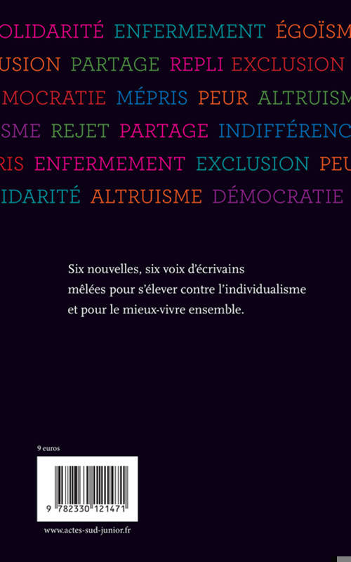 Six nouvelles autour du thème de la révolte contre l'individualisme, fruits d'une résidence collective d'auteurs de la collection Ceux qui ont dit non. Le harcèlement au travail, le racisme quotidien, la dictature, la misère, une catastrophe naturelle sont autant de fléaux contre lesquels la solidarité peut gagner.