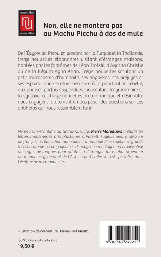 De l’Égypte au Pérou en passant par la Turquie et la Thaïlande, treize nouvelles étonnantes visitant d’étranges maisons, hantées par les fantômes de Léon Trotski, d’Agatha Christie ou de la Bégum Agha Khan. Treize nouvelles scrutant un petit microcosme d’humanité, ses angoisses, ses préjugés et ses espoirs. D’une écriture nerveuse à la ponctuation rebelle, aux phrases parfois suspendues, bousculant la grammaire et la syntaxe, ces treize nouvelles au ton ironique et désinvolte nous engagent fatalement à nous poser des questions sur ces antihéros qui nous ressemblent tant.