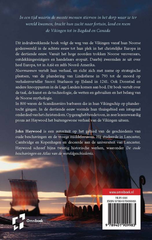 'Noormannen: de Vikingsaga 793-1241' van John Haywood beschrijft de rijke cultuur van de Vikingen in de volle breedte. Dit indrukwekkende boek volgt de weg van de Vikingen vanaf hun Noorse godenwereld in de achtste eeuw tot hun plek in het christelijke Europa in de dertiende eeuw. Het vertelt over de taal, de kunst en de technologie, de wetten en gebruiken en het belang van de Noorse mythologie. Haywood schrijft aantrekkelijk proza, waardoor het verhaal voor een breed publiek toegankelijk wordt. Hij beschrijft de aanvallen in het noorden van Europa, de moord op de skald en over verhalenverteller Snorri Sturluson op IJsland. Haywood laat de saga's herleven en vertelt over historische plaatsen in Amerika, Azië en Europa, met de Noormannen als ontdekkingsreizigers, veroveraars en kruisvaarders. Een uniek en bijzonder lezenswaardig werk.