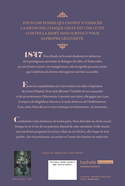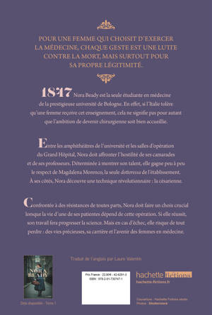 1847. Nora Beady est la seule étudiante de la prestigieuse université de médecine de Bologne. Son ambition de devenir chirurgienne, à une époque où la place des femmes est auprès des enfants, dérange les hommes qui l'entourent. Ses succès sont chaque fois minimisés et elle n’a pas droit à la moindre erreur, au risque de renforcer l’idée que les femmes ne sont pas faites pour la médecine. Sa rencontre avec Magdalena Morenco, seule femme à exercer la médecine à l’hôpital de Bologne, bouleverse sa vision des choses. Ensemble, elles travaillent avec acharnement à l’amélioration des techniques de césarienne. Cette opération chirurgicale est extrêmement dangereuse et les recherches sont éreintantes, mais le plus difficile est de faire face aux réactions masculines virulentes ; les hommes sont nombreux à refuser que leurs épouses soient opérées, qui plus est par des femmes. Confrontée à des résistances de toutes parts, Nora doit faire un choix crucial lorsque la vie d’une de ses patientes dépend de cette opération. Si elle réussit, son travail pourrait changer le monde. Mais en cas d’échec, elle risque de tout perdre : des vies précieuses, sa carrière et l’avenir des femmes en médecine.
