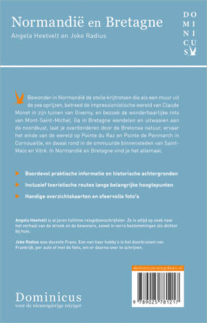 Bewonder in Normandië de steile krijtrotsen die als een muur uit de zee oprijzen, betreed de impressionistische wereld van Claude Monet in zijn tuinen van Giverny, en bezoek de wonderbaarlijke rots van Mont-Saint-Michel. Ga in Bretagne wandelen en uitwaaien aan de noordkust, laat je overdonderen door de Bretonse natuur, ervaar het einde van de wereld op Pointe du Raz en Pointe de Penmarch in Cornouaille, en dwaal rond in de ommuurde binnensteden van Saint- Malo en Vitré. In Normandië en Bretagne vind je het allemaal.
