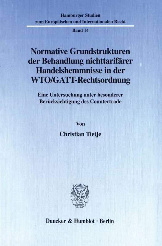 Durch das Inkrafttreten der Satzung über eine neue Welthandelsorganisation (WTO) zum 1. Januar 1995 nebst der durch sie inkorporierten Abkommen erfuhr das Internationale Wirtschaftsrecht die innovativste Entwicklung seit Beginn des GATT 1947. Die vorliegende Studie soll einen Beitrag zum Verständnis der materiellrechtlichen Strukturen der neu entstandenen WTO/GATT-Rechtsordnung leisten. Ein besonderes Augenmerk gilt hierbei den nichttarifären Handelshemmnissen. Da diese als Oberbegriff für jede handelsbeschränkende staatliche Aktivität in ganz unterschiedlicher Gestalt auftreten, wählt der Autor den sogenannten Countertrade als Beispiel einer handelsbeschränkenden Erscheinung im Weltwirtschaftssystem.