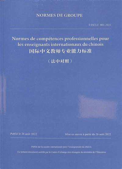 L'ensemble des normes et des programmes à destination de l'enseignement international du chinois, en Chine et à l'étranger, servant de fondation à la formation, au perfectionnement, à l'évaluation et à la validation de compétences pour les enseignants.