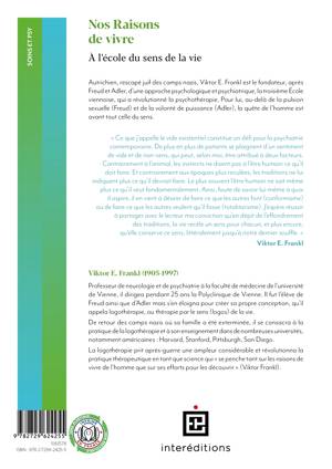 Autrichien, rescapé juif des camps nazis, Viktor Frankl est le fondateur, après Freud et Adler, d'une approche psychologique et psychiatrique, la troisième Ecole viennoise, qui a révolutionné la psychothérapie. Pour lui, au-delà de la pulsion sexuelle (Freud) et de la volonté de puissance (Adler), la quête de l'homme est avant tout celle du sens.
