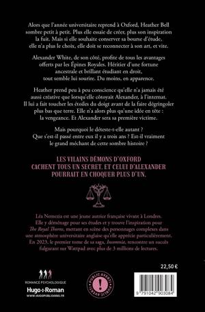 Alexander White, de son côté, profite des tous les avantages offerts par les Épines Royales. Héritier d’une fortune ancestrale et brillant étudiant en droit, tout semble lui sourire. Du moins, en apparence.
