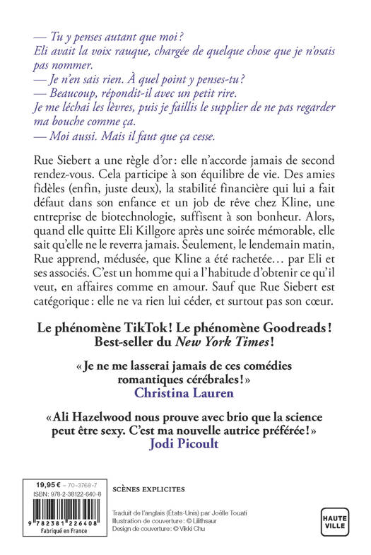 « Ali Hazelwood nous prouve avec brio que la science peut être sexy. C'est ma nouvelle autrice préférée ! » Jodi Picoult