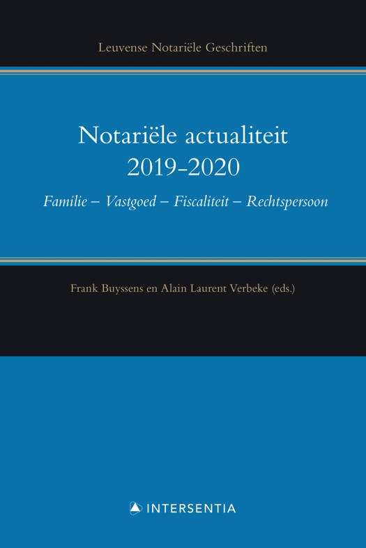 De Leuvense Notariële Geschriften bundelen bijdragen die relevant zijn voor de notariële praktijk. Het tweeëntwintigste volume hierin, Notariële actualiteit 2019-20, bevat onderwerpen die aan bod kwamen tijdens de postuniversitaire cyclus notariaat 2019-2020, georganiseerd door het Centrum voor Notariaat van de Rechtsfaculteit van de KU Leuven, onder leiding van notaris Frank Buyssens en professor Alain Laurent Verbeke.