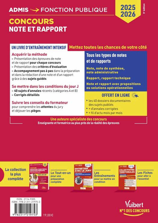 Afin de préparer efficacement les épreuves de note et de rapport aux concours et examens 2025-2026, ce livre vous propose un entraînement intensif, grâce à :