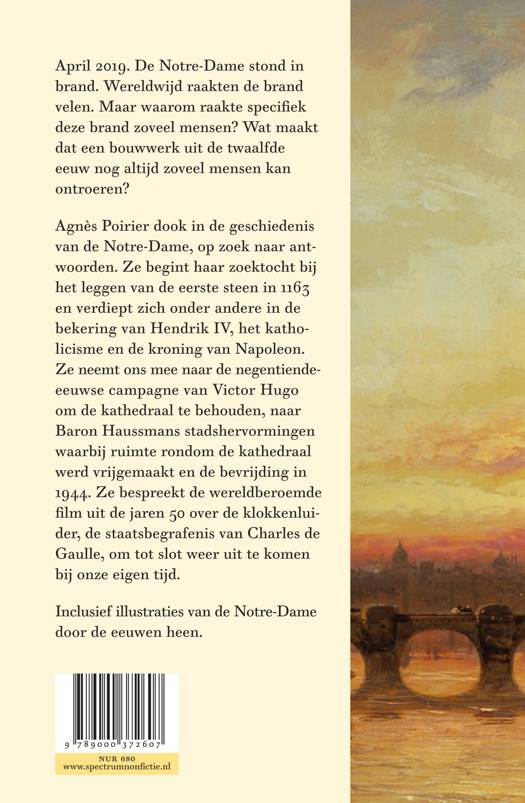 Agnès Poirier dook in de geschiedenis van de Notre-Dame, op zoek naar antwoorden. Ze begint haar zoektocht bij het leggen van de eerste steen in 1163 en verdiept zich in de bekering van Hendrik IV tot het katholicisme en de kroning van Napoleon. Ze neemt de lezer mee naar de negentiendeeeuwse campagne van Victor Hugo om de kathedraal te behouden, naar Baron Haussmanns stadshervormingen waarbij ruimte rondom de kathedraal werd vrijgemaakt en de bevrijding in 1944. Daarnaast gaat ze dieper in op de wereldberoemde film uit de jaren '50 over de klokkenluider die de kathedraal ook bij een jong publiek onder de aandacht bracht, de staatsbegrafenis van Charles de Gaulle, om tot slot weer uit te komen bij onze eigen tijd.